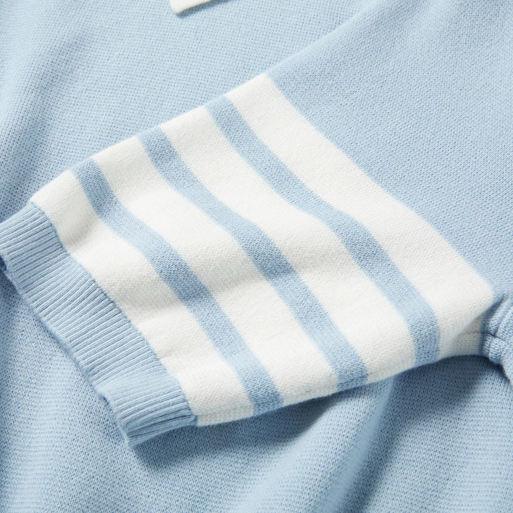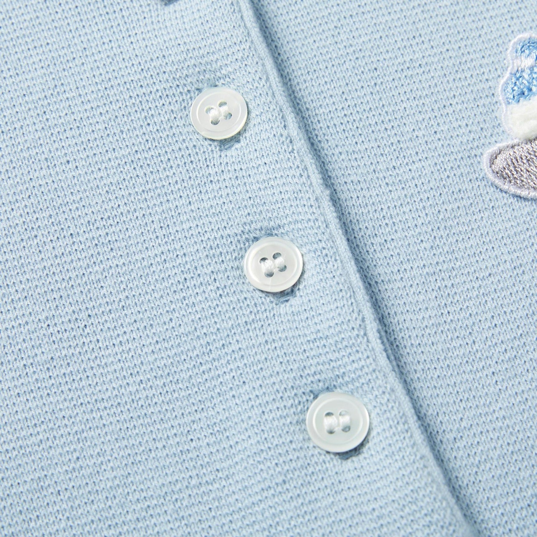 Button-fastening side slits with signature striped grosgrain trim
