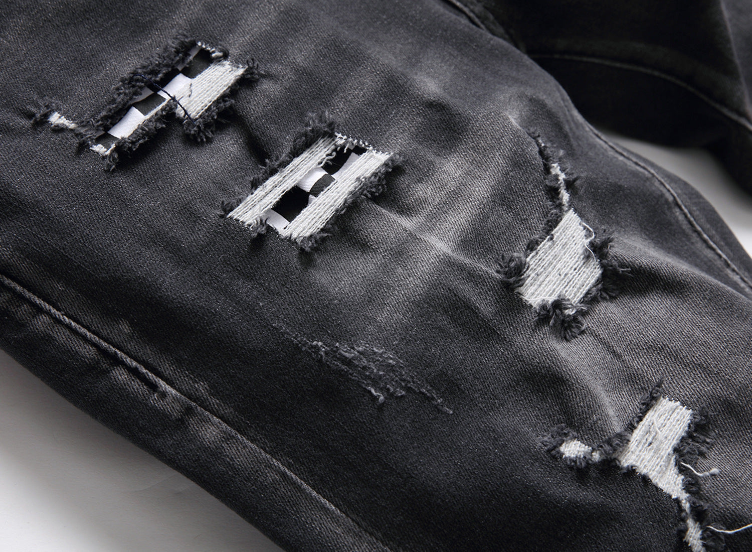 Five-pocket jeans are versatile trousers that are now part of global everyday life. The slim-fit style is ideal for creating many different outfits. This black version with all-over spots is recommended for looks with a rock flavour and is easy to combine with garments with distressed or vintage-looking details.