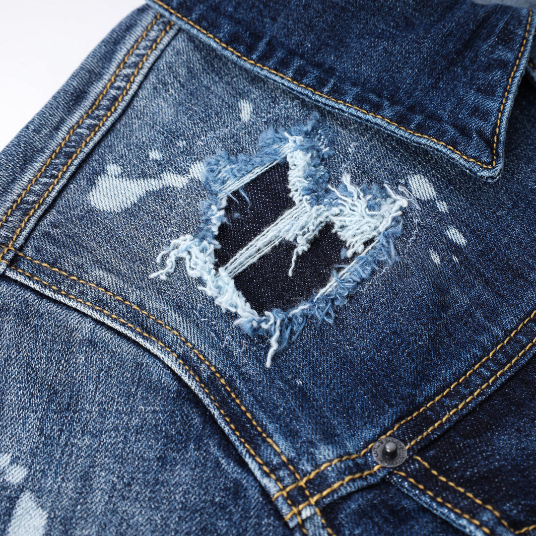 Five-pocket jeans are versatile trousers that are now part of global everyday life. The slim-fit style is ideal for creating many different outfits. This black version with all-over spots is recommended for looks with a rock flavour and is easy to combine with garments with distressed or vintage-looking details.